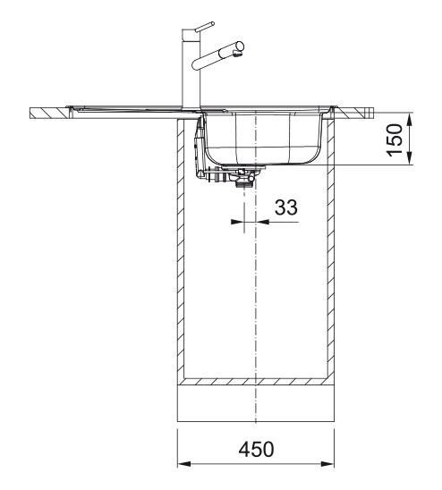 Cena zahrnuje: Sítkový ventil 3 1/2" s přepadem. Sifon pro úsporu místa 6/4" s odbočkou na myčku nádobí.