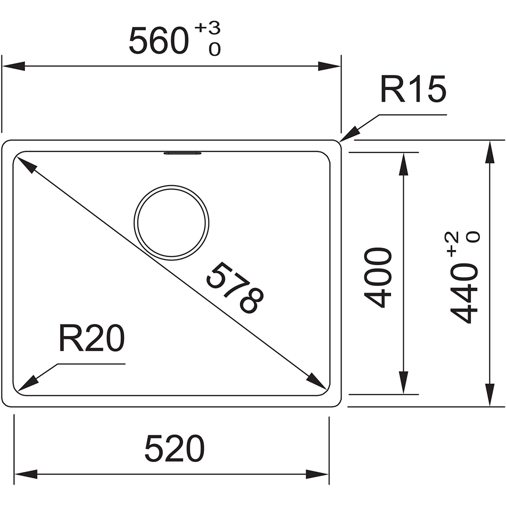Dřez: 520 × 400 × 200 mm