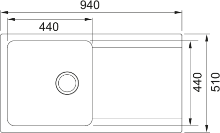 Dřez: 440 × 440 × 190 mm