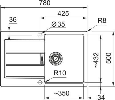 Dřez: 350 × 432 × 200 mm