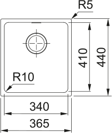 FRANKE dřez Tectonite SID 110-34 pro skříňku od 450 mm. rozměry: dřez: 340 × 410 × 200 mm. sítkový ventil. 125.0363.785