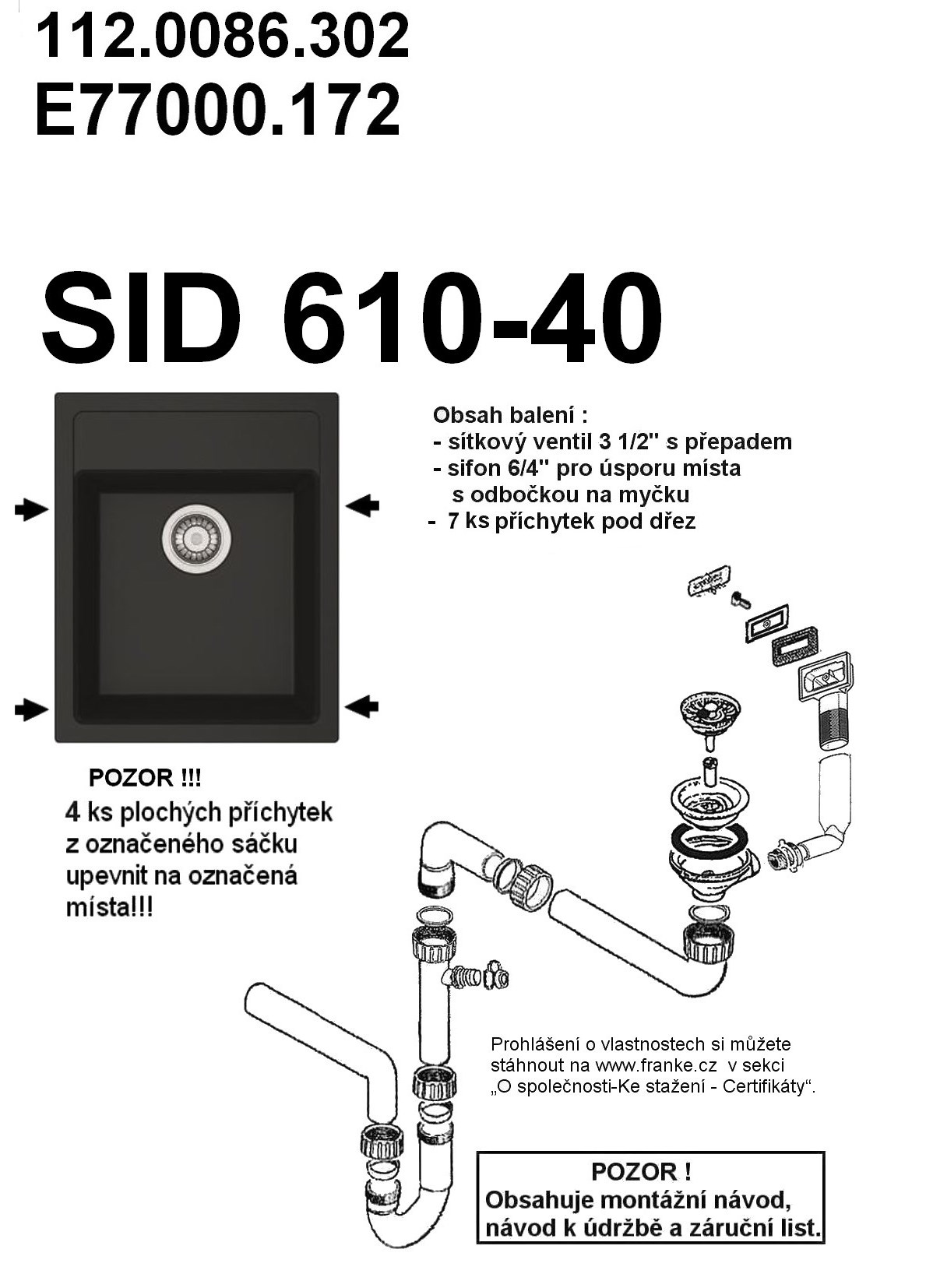 FRANKE Dřez SID 610-40 430x530mm bílá