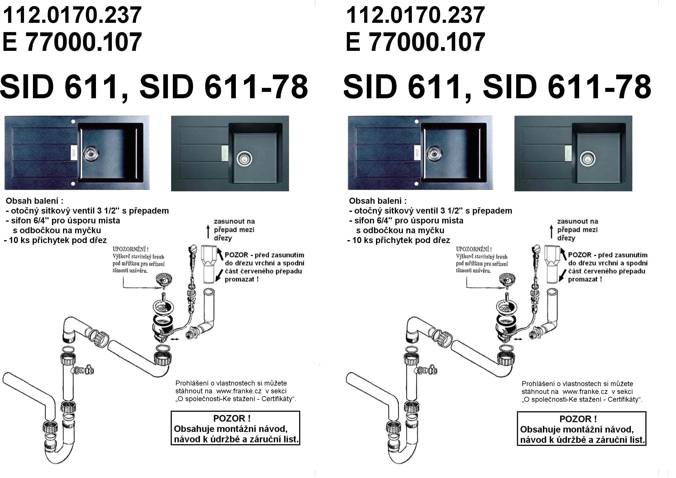 FRANKE Dřez SID 611-78 780x500mm bílá