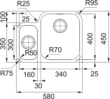FRANKE Dřez SRX 160/7 580x450mm nerez