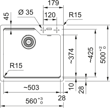 Vrták pro frézování otvoru pro baterii do granitových dřezů není součástí balení dřezu. Lze zakoupit pod kódem 346147. Slouží pouze pro vrtání předfrézovaných otvorů. Průměr 35 mm.
