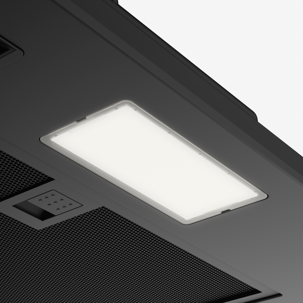 Vestavný odsavač par Box Smart. Provedení černá. Energetická třída D. Posuvné přepínače. 3 Stupně výkonu. Poznámka: Cena bez recyklačního příspěvku. 305.0689.925