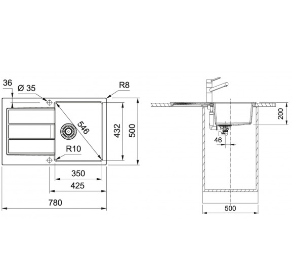 FRANKE Set T84Č S2D 611-78 černá + FP 9000.071 onyx