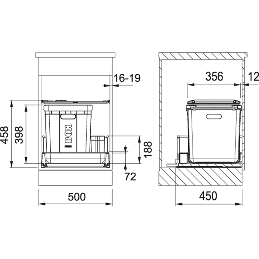 Plastový koš 40 l (Možnost umístit i 2 sáčky) + 1 Boční koš
