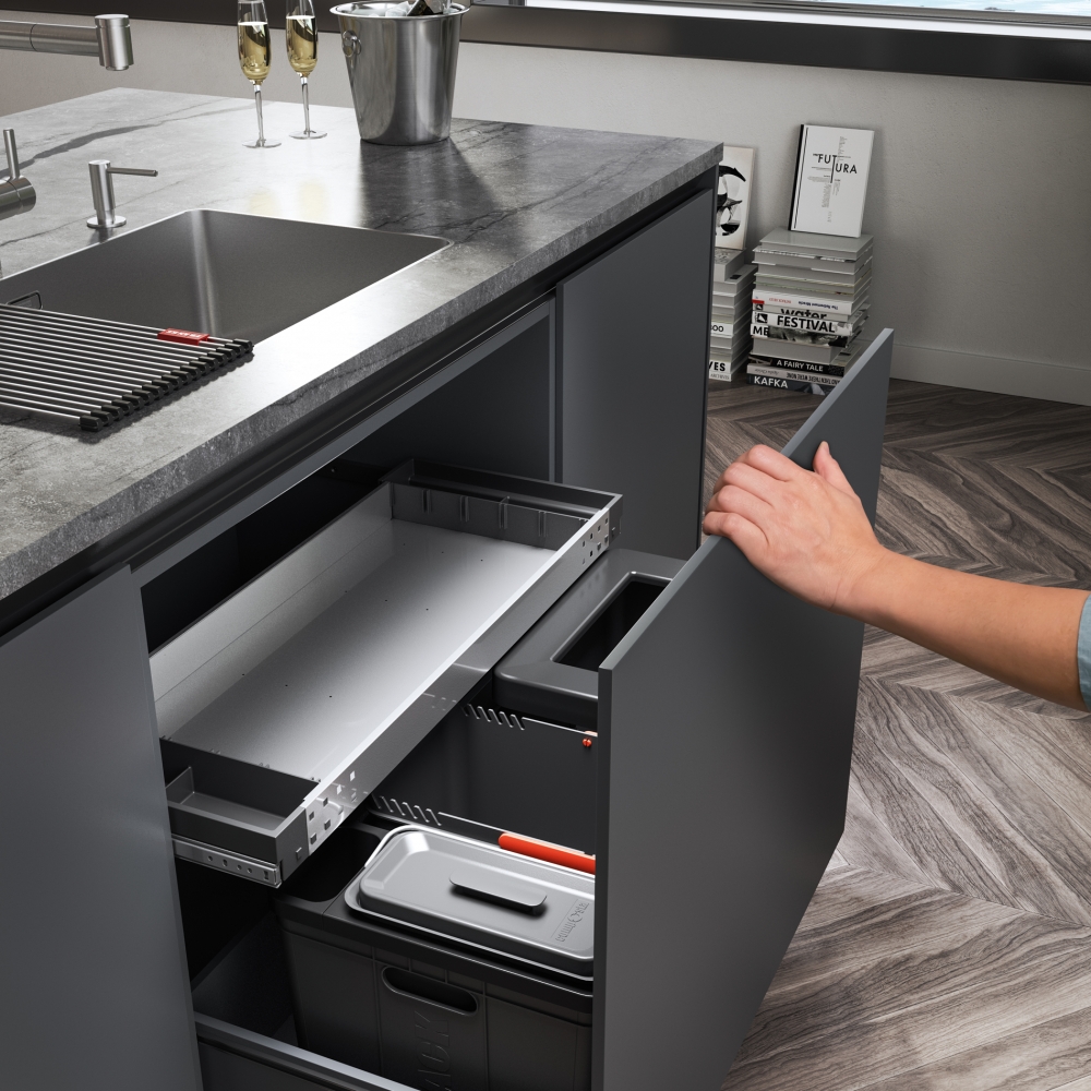 Výsuvná zásuvka nad košem v ceně koše