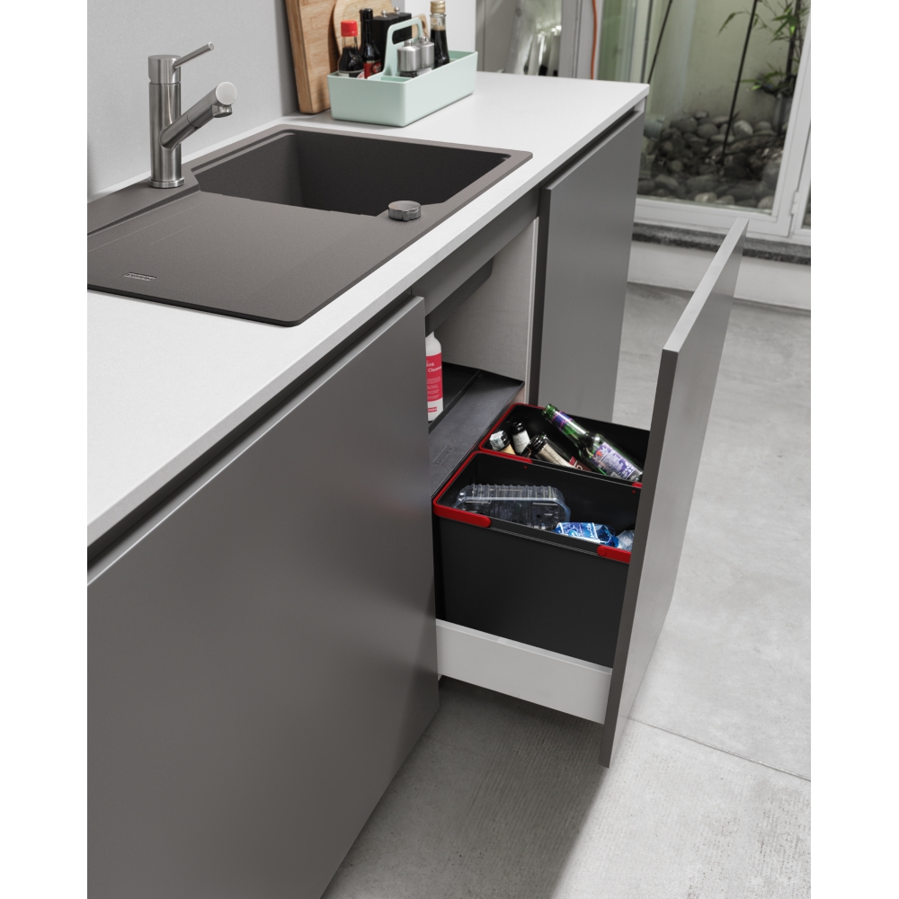 Koš se vkládá do zásuvky s plnovýsuvem, která je osazena podélným relingem nebo vysokou bočnicí.