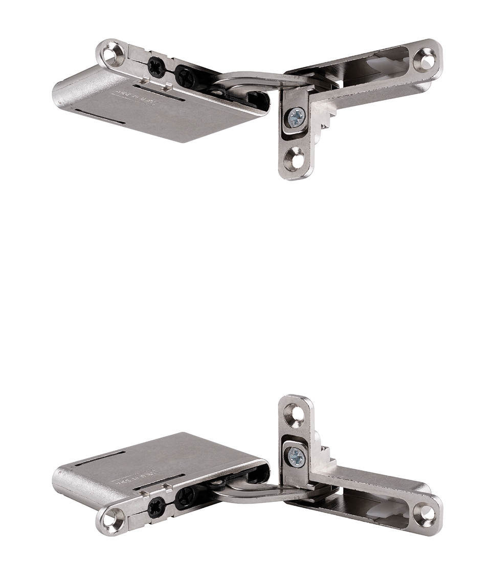 Verze s tlumeným dotahem. Dynamická zatížitelnost je 16kg na pár. Úhel otevření 105°. Možnost vrtání od kraje dveří K=3-6mm. Min tloušťka materiálu k zafrézování je 18mm.