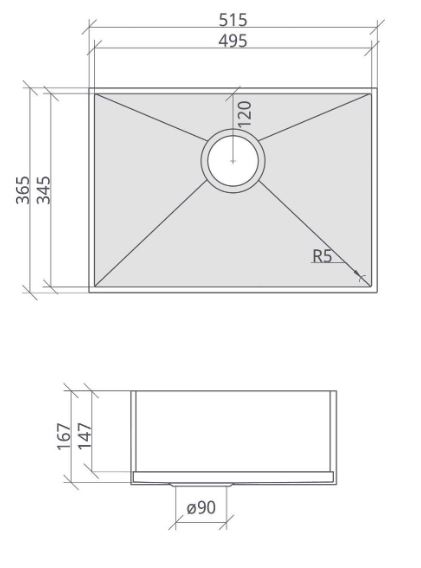GetaCore kuchyňský dřez s přepadem a s nerezovým dnem s “límcem“.