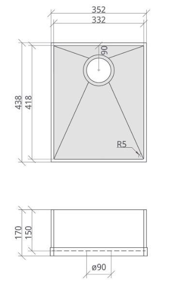 GetaCore kuchyňský dřez bez přepadu s nerezovým dnem.