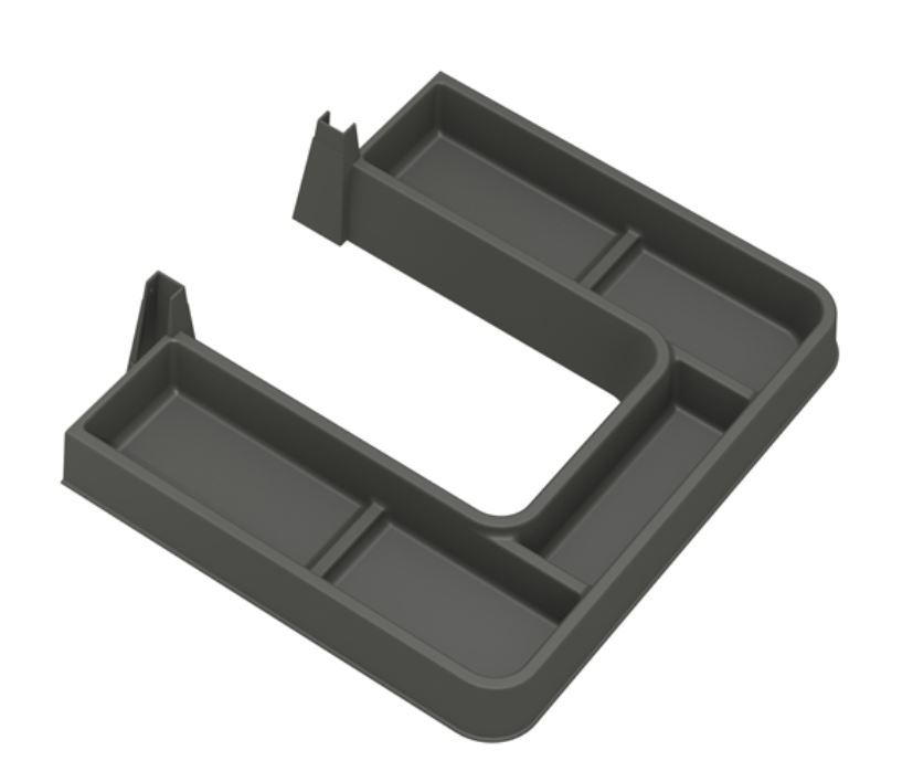 Ohrádka s přihrádkama do poddřezové zásuvky, která lemuje výřez na sifon.