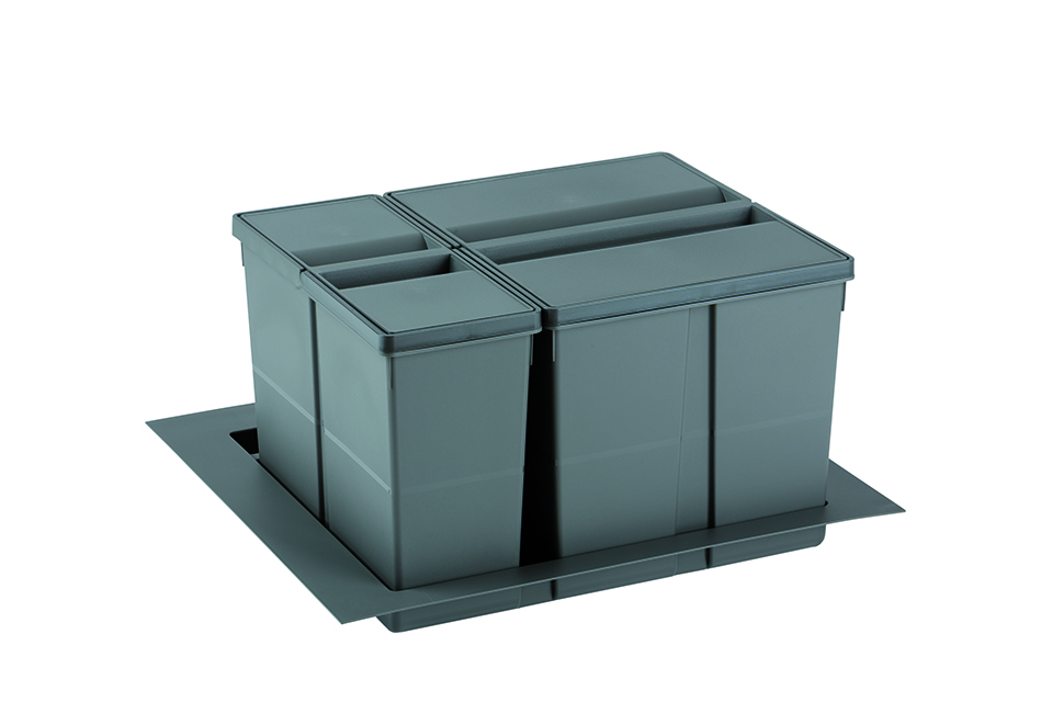 Sorter 9XL SYSTEM do skříňky 600 mm, obsahuje plastová víka košů, 1x 26L + 1x 11L, výška 277 mm. Velký koš s obsahem 26 litrů je určen pro suchý tříděný odpad.
