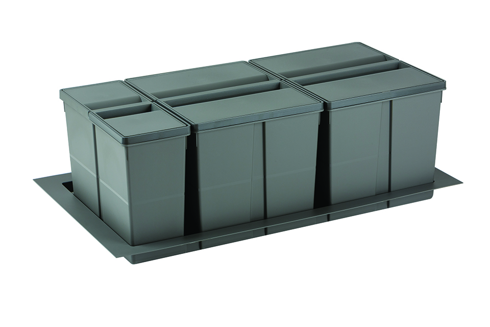 Sorter 9XL SYSTEM do skříňky 900 mm, obsahuje plastová víka košů, 2x 26L + 1x 11L, výška 277 mm. Velký koš s obsahem 26 litrů je určen pro suchý tříděný odpad.