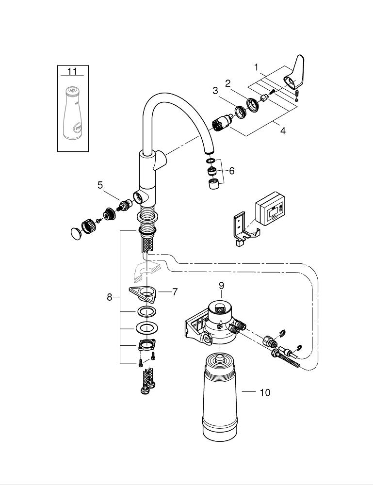 GROHE 30385000 Blue Pure BauCurve startovní sada C-výpusť chrom