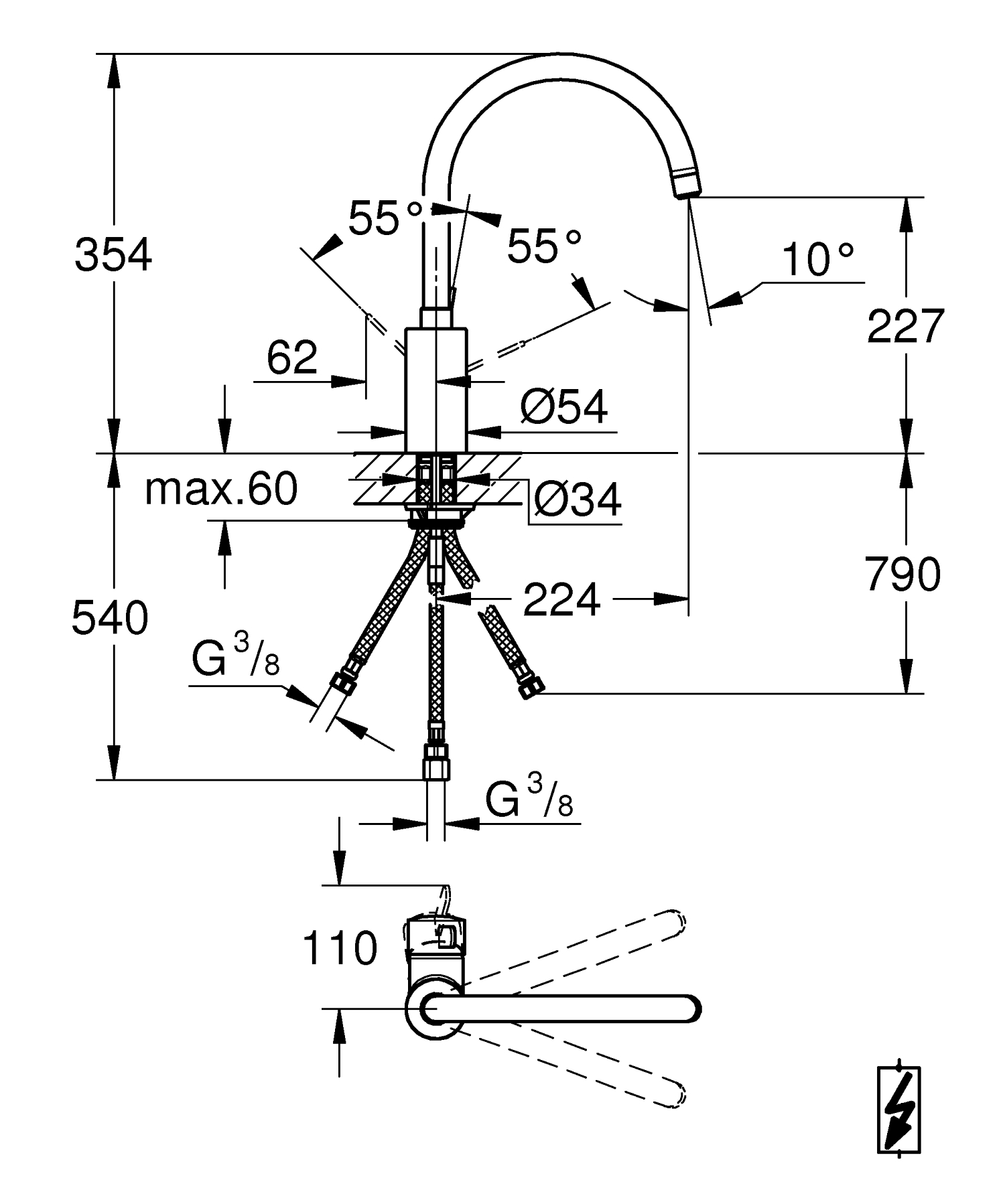 Průtokový ohřívač vody klade na kuchyňskou baterii zvláštní požadavky. Oproti centrálnímu přívodu vody to znamená, že je třeba připojit tři hadice. Pokud hledáte vhodnou nízkotlakou baterii, tato páková baterie GROHE pro vás bude ideální. A kuchyňská baterie Eurosmart Cosmopolitan nabízí ještě víc: díky vysoké výpusti je ideální pro plnění nebo oplachování velkých hrnců a díky atraktivnímu prvotřídnímu chromovanému povrchu stačí k obnovení jejího lesku jen měkká utěrka. Dostupná a atraktivní: tato páková baterie se stane klenotem každé kuchyně.