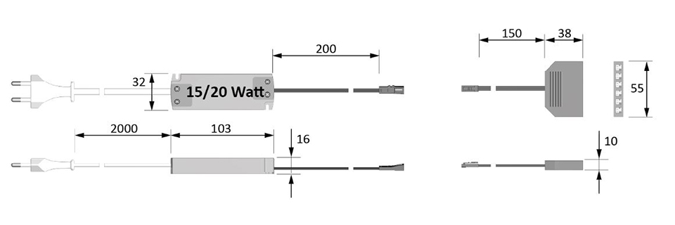 Transformátor 12V, 20W, 200-240V, 50Hz, 2m Europlug 1x M1.