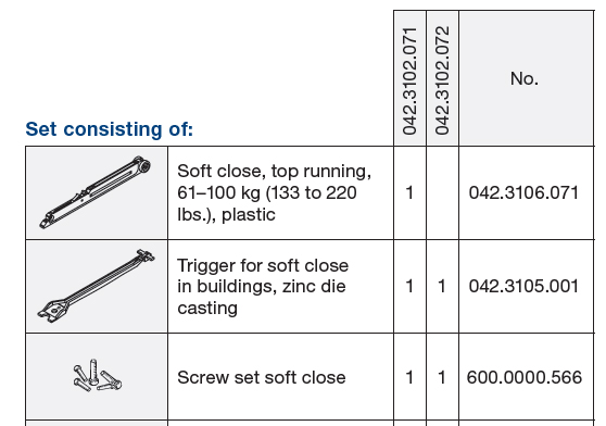 HAWA 042.3102.071 Porta/Divido posuvné interiérové kování tlumič 61-100kg