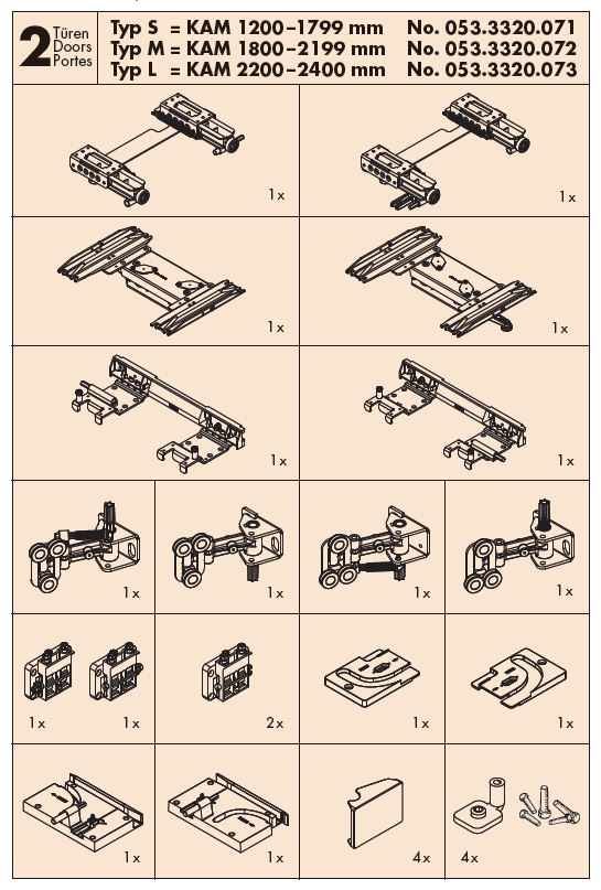 HAWA 053.3320.073 Frontino 40 H FS posuvné dveře typ L 2200-2400mm sada kování