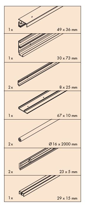 HAWA 053.3321.240 Frontino 40 posuvné dveře typ L 2200-2400mm sada vedení