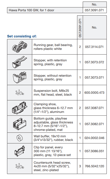 HAWA 057.3091.071 Porta 100 GW, sada kování pro skleněné dveře do 100kg