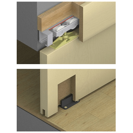Kování pro posuvné interiérové dveře do 80 kg včetně dvou tlumičů.
