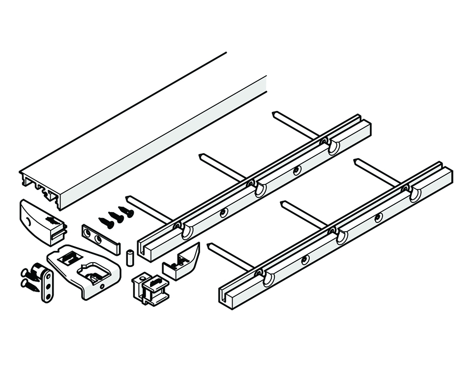 Sada vedení v délce 1300mm. Sada obsahuje podlahový profil, krytky, náběhový prvek a vrtací šablonu. Eloxovaný hliník, barva stříbrná.