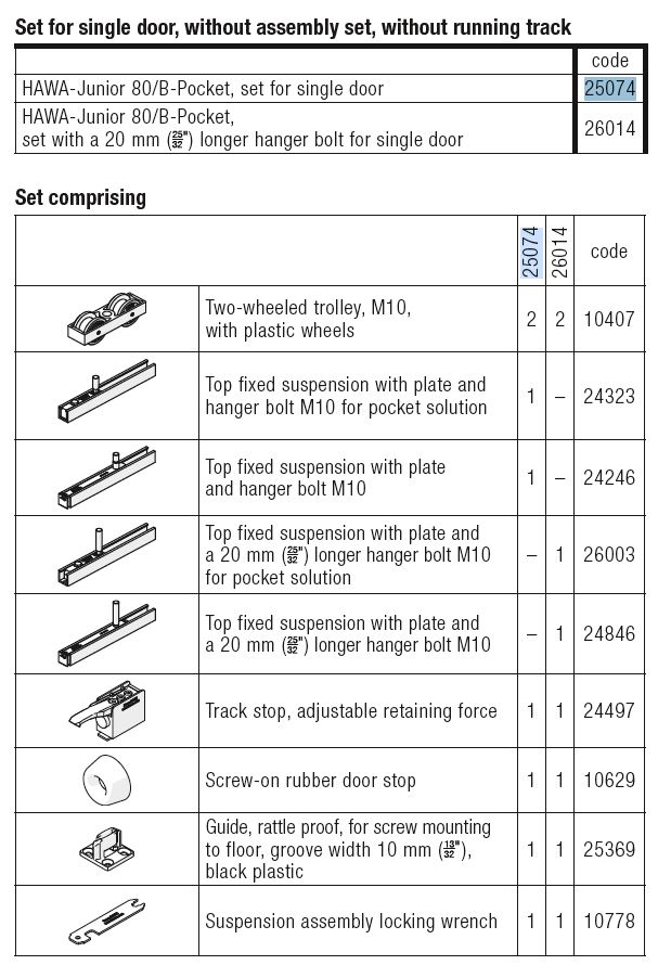 HAWA 25074 Junior 80/B-Pocket posuvné interiérové kování sada kování do 80kg