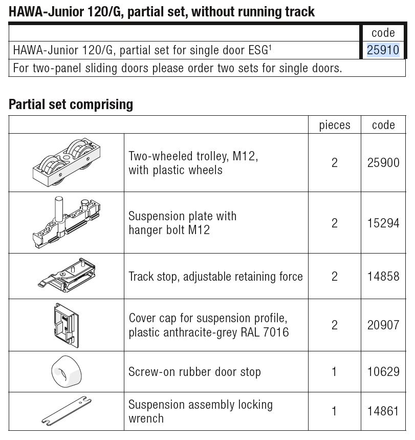 HAWA 25910 Junior 120/G posuvné skleněné interiérové kování sada kování do 120kg
