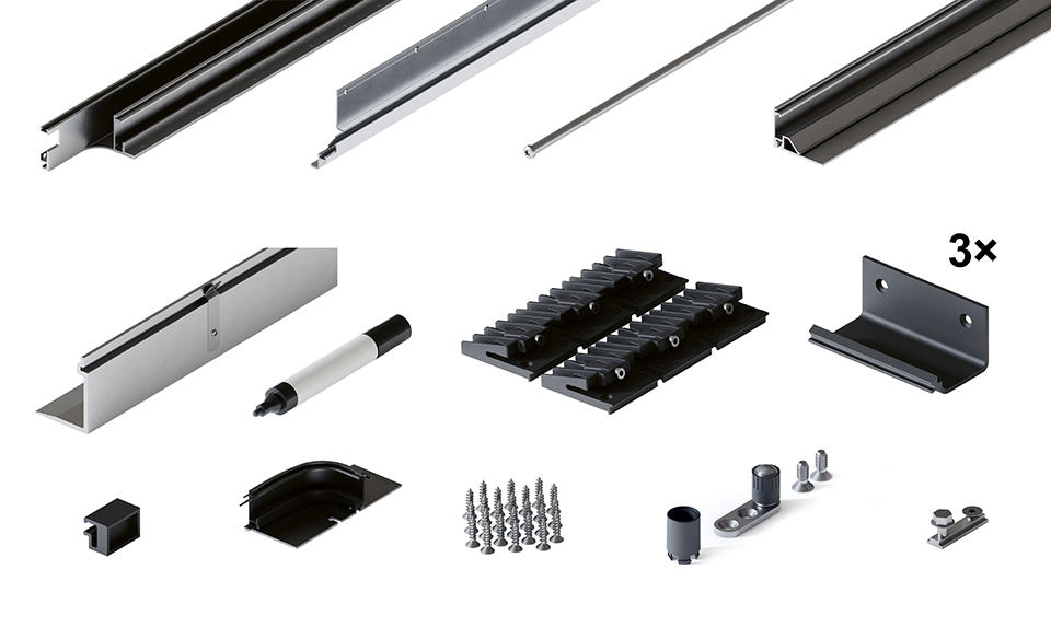 Hawa Folding Concepta III 20 pravá + Concepta III levá. Sada vedení pro tři křídla, černá elox, materiál hliník.