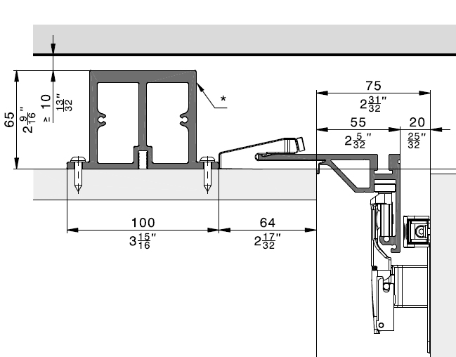 Díky volitelnému profilu pro zesílení vrchní části skříně mohou být realizovány tři dveřní systémy bez dělicích příček.