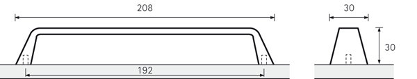 Úchytka BASILIA délka 208 mm, rozteč vrtání 192 mm.. Povrchová úprava imitace nerezi.