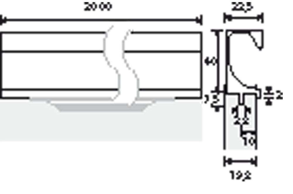 Úchytka ESLINGA délka 2000 mm ke krácení. Montáž do drážky. Povrchová úprava eloxovaný hliník.