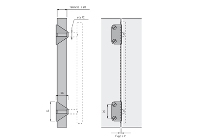 Pro úchytky na skládané dveře. Lze použít pro úchytky na dvířkách tloušťky max. 20 mm a s dosedací plochou úchytky větší, než 12 mm. Povrchová úprava: chrom mat.