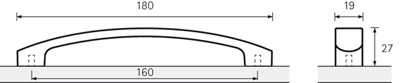 Úchytka SALONA délka 180 mm, rozteč vrtání 160 mm. Povrchová úprava imitace nerezi.