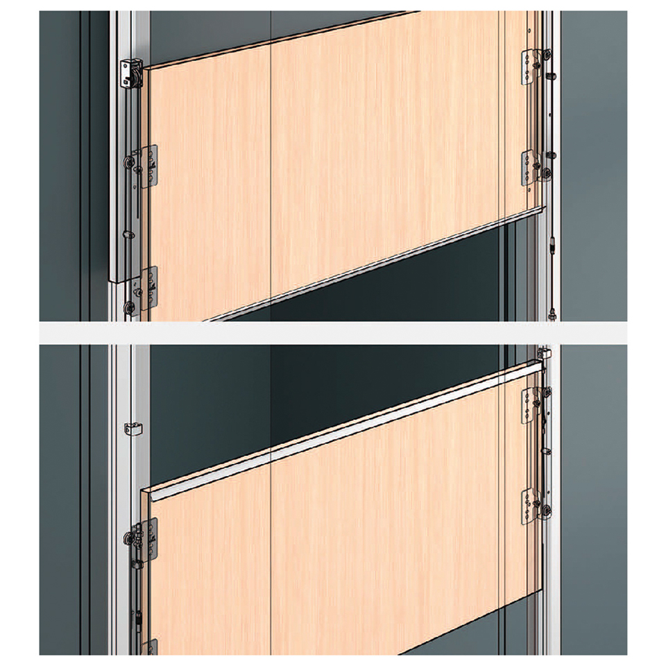 Upozornění: horní dveře tvoří protizávaží dveří dolních. Hmotnost obou dveří musí být totožná