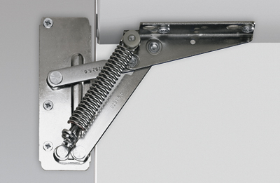 Sada. Síla pružiny až do 220 N. Úhel otevření 75°. Racionální montáž do předvrtaných otvorů. Maximální hmotnost dvířek 4,6 kg. Ocel niklovaná. Sada obsahuje: pravé a levé výklopné kování.