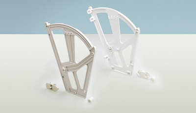 K montáži do korpusu libovolné šířky. Bílý plast. Sada obsahuje: 2 boční díly, levý a pravý s otvory pro přichycení čela, 2 otočná uložení, 2 dorazy.