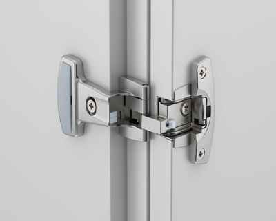 Zdvojený závěs pro nekonečnou konstrukci s boky a dvířky 19 mm, úhel otevření 180°. Naložení dveří 6,5 mm. Čep v ose boku. Bez pružiny. DSoporučená miska závěsu č.104576 se objednává samostatně.
