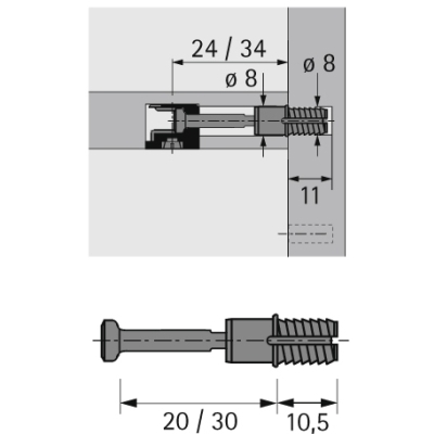 Rychlomontážní kolík, rozpěrné pouzdro pro průměr vrtání 8 mm. Upínací rozměr 30 mm. Ocel/ plast modrý.