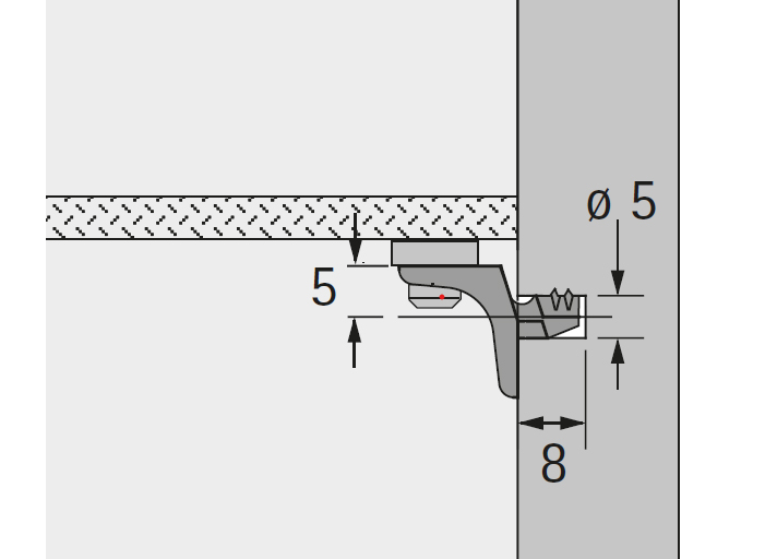 Podpěrka skleněné police. Průměr čepu 5mm. Lze použít v System 32. Třída nosnosti L 75 (75 kg/m2). Zinkový odlitek niklovaný / Plast transparentní.