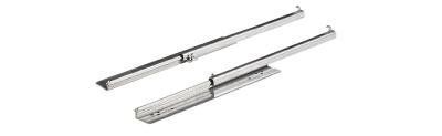 Částečný výsuv pro montáž na dno korpusu. Nosnost 40 kg. Jmenovitá délka zásuvky 270 - 395 mm, minimální hloubka korpusu 283 - 408 mm. Jednoduchá montáž nasazením na čepy, beznářaďové seřízení výšky pomocí vroubkovaného kolečka na čepu.