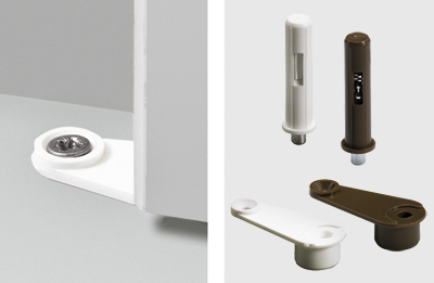Pro vložená malá dvířka. Použitelný pro dveře tloušťky 12 - 21 mm. Úhel otevření 140°. Plast. Sada obsahuje: 1 čep s pružinou, 1 čep bez pružiny, 2 protikusy.