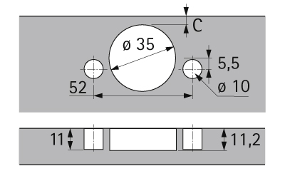 Závěs vložený k zalisování s klipovou technikou pro profilovaná dvířka do 32 mm. Úhel otevření 95°. Tloušťka dveří od 15 mm. Průměr misky 35 mm. S pružinou. Integrované seřízení naložení +2,5 mm. Integrované seřízení hloubky pomocí excentru +- 2,2 mm/-1,8mm. Výškové seřízení pomocí montážní podložky +- 2 mm. Doporučené podložky: D1,5 vrut 103757 D1,5 euro106369
