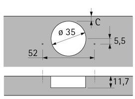 Naložený klipový miskový závěs BEZ PRUŽINY pro nábytková dvířka bez úchytek. Úhel otevření 110 °. S klipovou technikou. Vyhnutí 0 mm. Tloušťka dveří od 15 mm. Průměr misky 35 mm. Doporučené podložky: D1,5 vrut 106403 D1,5 euro119240
