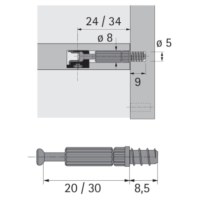 HETTICH 9047978 kolík Twister DU 320, k zašroubování, 30 mm, pozinkováno, černá