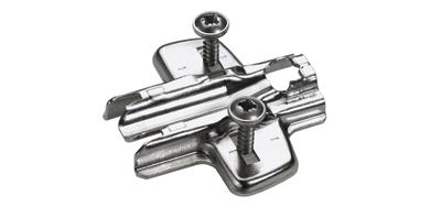 Montážní podložka Systém 8099 pro závěsy Sensys. Patentovaná, k našroubování Hetrtich Direkt Top pro boky a mezistěny. Tloušťka boku od 15 mm. S předmontovanými čepy a asymetricky umístěnými speciálními vruty pro vrtání prrůměru 5 x 7,5 mm.