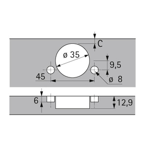 Naložený závěs Sensys 8645 s pružinou, úhel otevření, vrtání misky 45x9.5mm, rychlomontáž misky Fix D8x6mm.